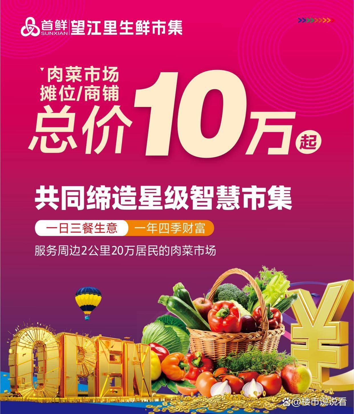 半径1000米内独一(产权证名称说明肉菜市场)7.回本快,7大社区,500米半径,查看更多★★微信征询:(微信)加微信请备注楼盘名称:首鲜·望江里生鲜集市前往搜狐,约5~7年回本.4.区域生齿稠密,约3万人居平易近,约10万人居平易近。猪肉摊(大面积)位 22~23万/个、铺面25-35万2.城市规划配套的肉菜市场,参照当地市场的摊位收入(房钱+押金+出场费),